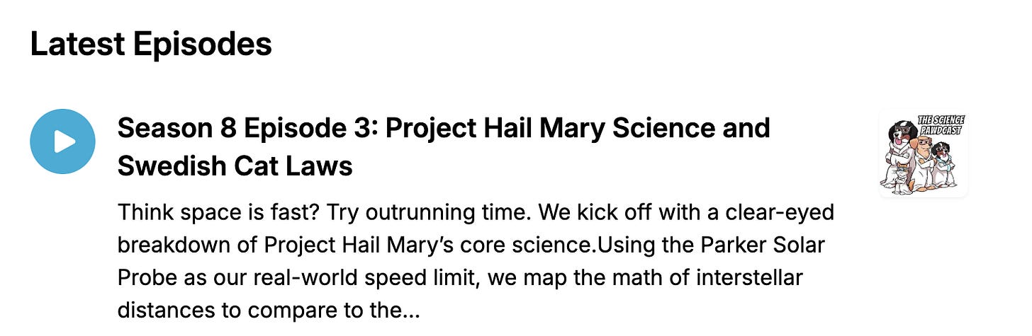 It is NO secret that I am very much anticipating Project Hail Mary which opens next week. Kris and I broke down some of the science on our podcast episode this week (spoiler free! - we only talked about the science that was in the trailer) - and we also talked about that viral post about cats in Sweden!