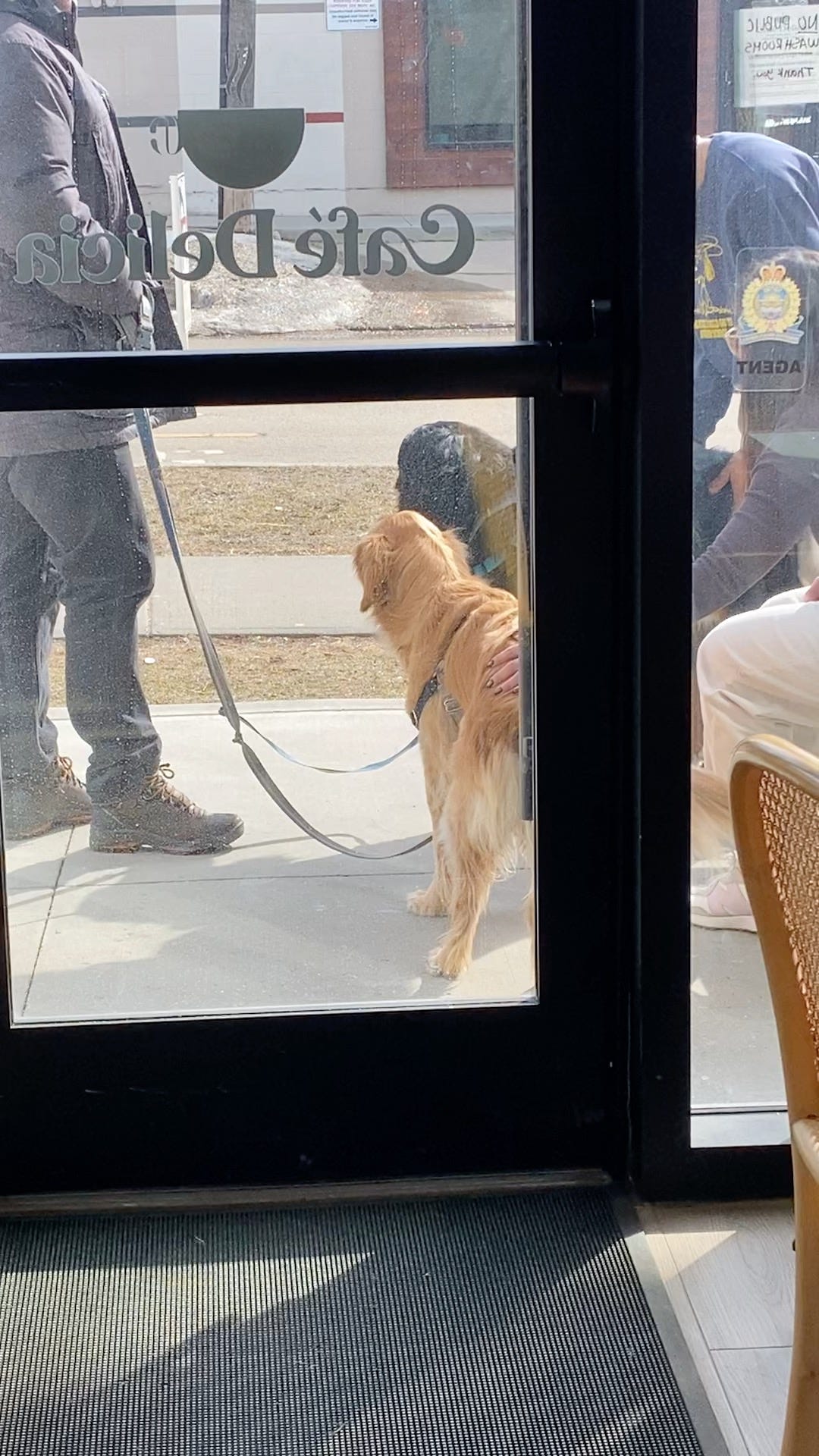 We walked to a local coffee shop for some delicious coffee and a baked treat. While Kris and Adam were getting the order, I stayed outside with the dogs. A couple from inside came out and asked to see them (which was really nice of them).