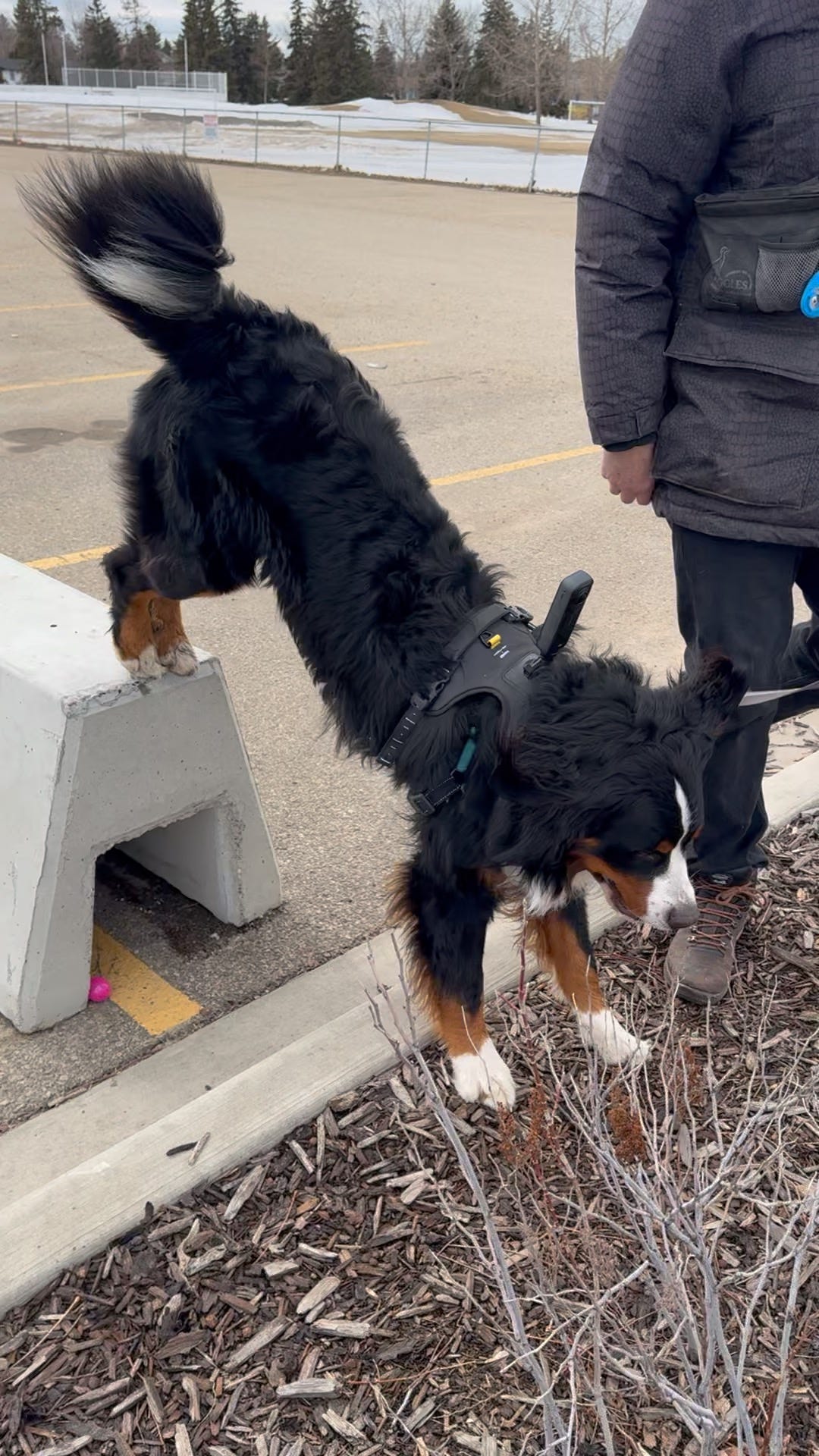 Bernoulli has come SO far. If this had been last August or September, he likely would have barked at strangers approaching him quickly. But now he has so much more confidence. They said hello, and Bernoulli was all smiles. Then he leaned his massive frame into them, asking for cuddles and pets.